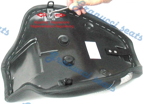 SEAT ASSEMBLY INSTRUCTIONS for HD SOFTAIL Id-No. 909 (1340cc) - Id-No 910 (1450cc) ![]() DRIVER SEAT After removing the original seat put on the new one, making sure that the bracket placed under the seat goes under the tank. Now, fit the new saddle and fix it on the two sides with original bolts. You can adjust the position (photo). If you see it is necessary, fix the driver's seat on the rear. If on the rear mudguard there is a central hole to fix the seat on the rear you have to screw the bolt the bracket. If on the rear mudguard there is not a hole, you can remove the bracket or drill a hole in the mudguard. PASSENGER SEAT 1. If on the rear mudguard there is a hole to fix the passenger seat on the front, you have to fix the bracket over the bracket of the driver seat. Now fix it on the rear passing through the bracket. 2. If on the rear mudguard there is not a hole, for fixing the passenger seat you have to fix it on the rear through the bracket and then drill a hole in the mudguard to fix the bracket. LONG SEAT After removing the original seat put on the new one, making sure that the bracket placed under the seat goes under the tank. Now, fit the new saddle and fix it on the two sides with original bolts. You can adjust the position (photo). If you see it is necessary, fix the driver's seat on the rear. If on the rear mudguard there is a central hole to fix the seat on the rear you have to screw the bolt the bracket. If on the rear mudguard there is not a hole, you can remove the bracket or drill a hole in the mudguard. N.B. Always remember to put the saddle on with care and attention, to avoid impacts or frictions onto the tank and the motor-bike frame. Remember to periodically check the bolts and nuts as well as every saddle tightening part, which could loosen from vibrations ! www.granucciseats.com - e-mail: info@granucciseats.com